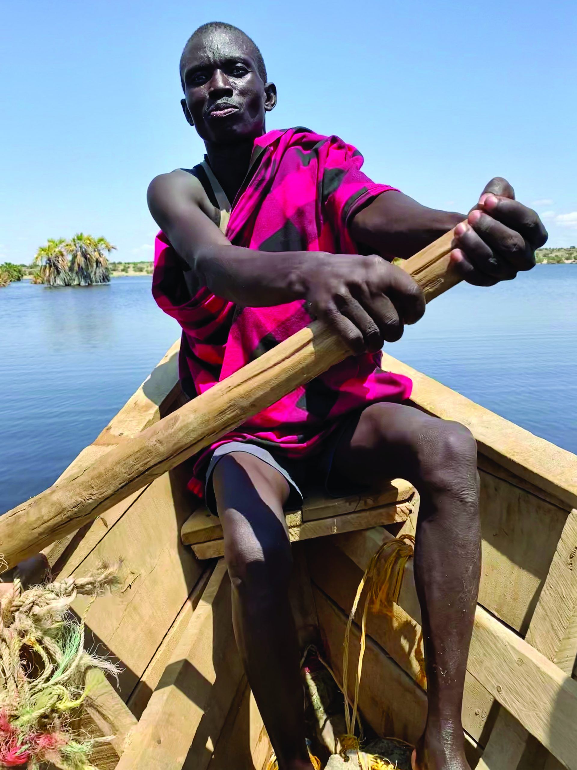 “Now, we can sail out in our boats in teams so that we can watch out for each other. In a boat with an engine, we can quickly get out to where the fishing is still good.” Peter Ekiru nods toward the reed mats covered with dried fish baking in the sun and making the hot air taste of salt.