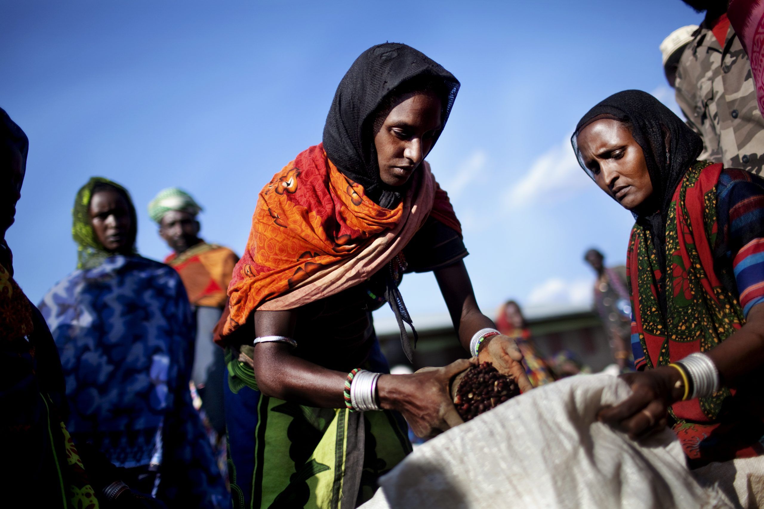 © Sofia Wraber Kvinde modtager månedlig nødhjælp bestående af bønner, tørret majs og madolie