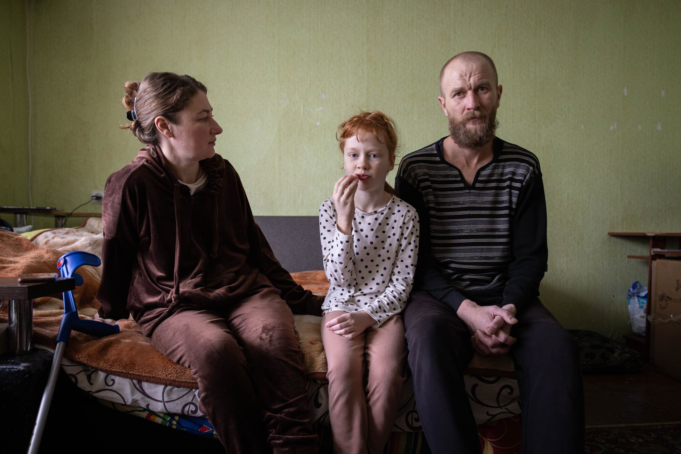 Today, she sits in an apartment in Mykolaiv with her eight-year-old daughter Sonia and her husband, a sailor who is now unemployed. After a while, Kateryna responds to the question about how to describe war.