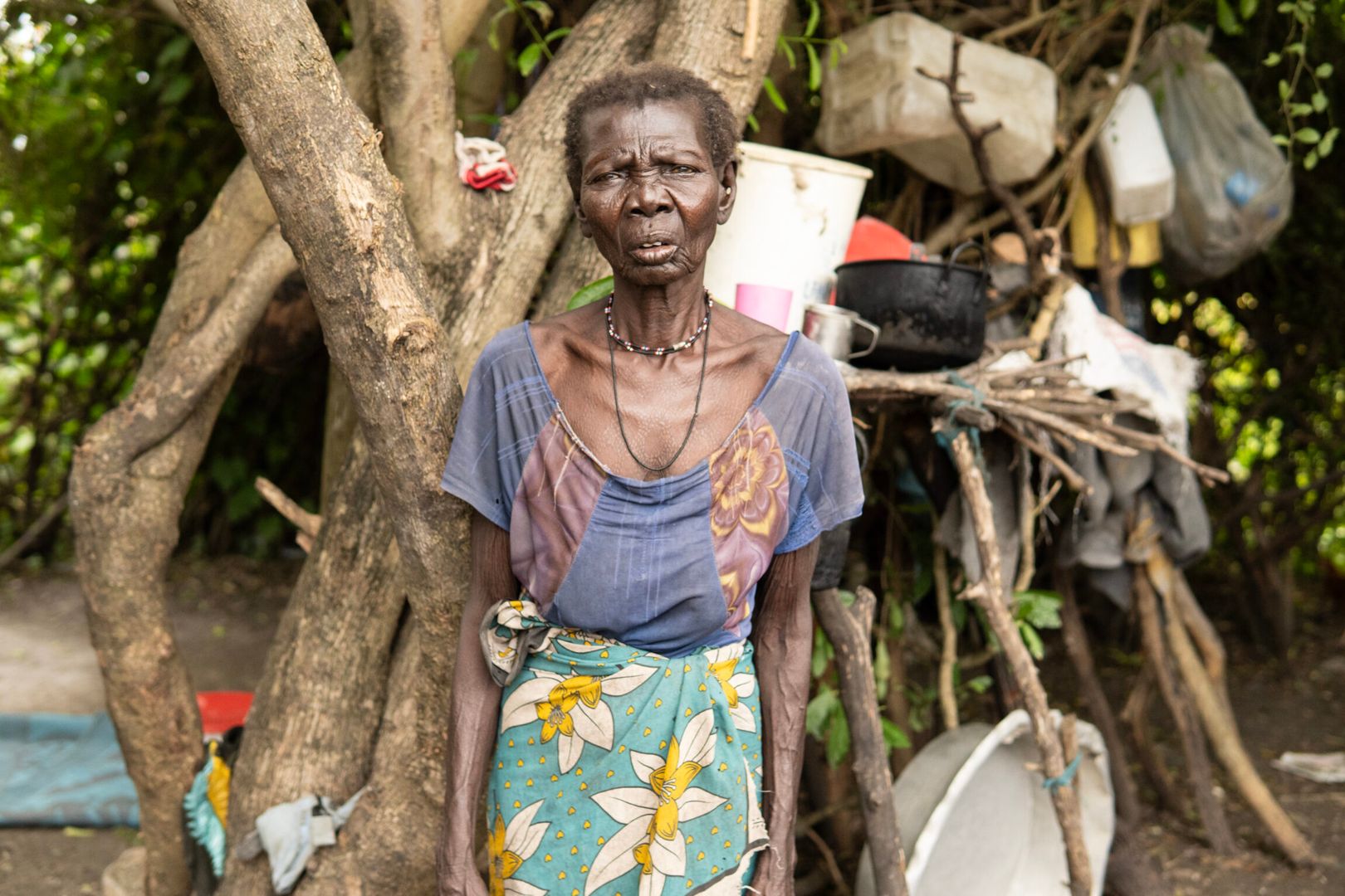 Alyab Ngangdong speaks loudly and with determination. The probably-around-60-year-old woman is hard of hearing – and speaks partly through her neighbour, Sadia. It was Sadia who looked after her when she first arrived in the town of Pibor in eastern South Sudan.