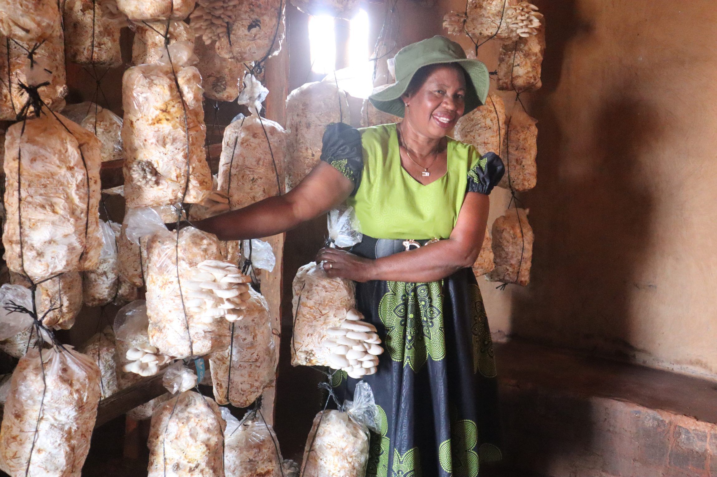 When Utariri introduced mushroom training, she jumped at the chance and soon after converted her rondavel kitchen into a thriving household mushroom hub.
