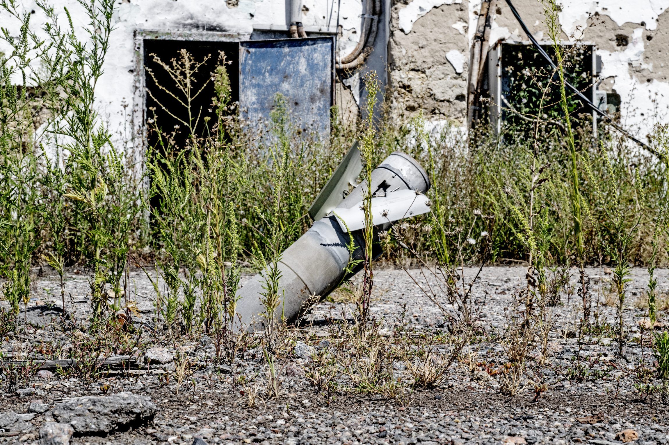 Before the war, the village of Myrne was home to 700 people. Today, only 40 remain. Along both roads leading to the village, one must zigzag to avoid artillery shelling craters. Several unexploded rockets protrude from the roadside. Some Myrne residents have even gathered rockets and grenades in piles, removing them from their houses or farmland.